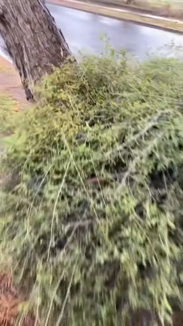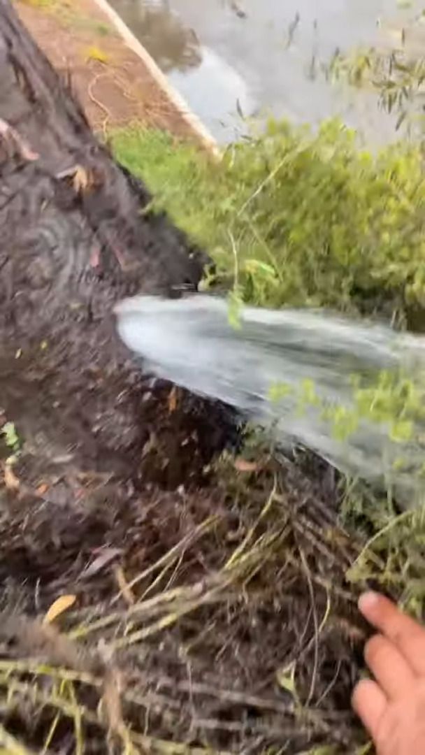 どこからか水の音が聞こえてくることに気付いた撮影者さん。 街路樹の茂みを手でかき分けると、意外なところから水漏れしていることが判明しました!!