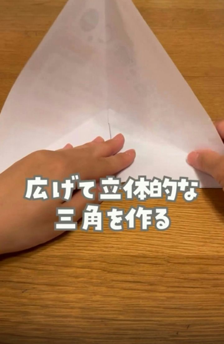 三角部分を広げて、立体的な三角形を作ります。
