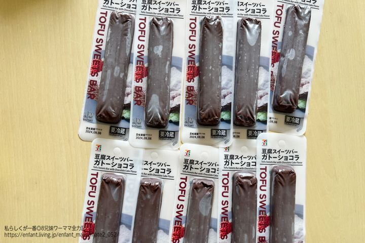 豆腐バーは、棒形状(バー)にした豆腐で、ワンハンドで手軽に植物性たんぱく質を摂れるとセブンイレブンで大人気の商品です。ガトーショコラは「豆腐バー」シリーズで初のスイーツで、その名の通りガトーショコラ味です。