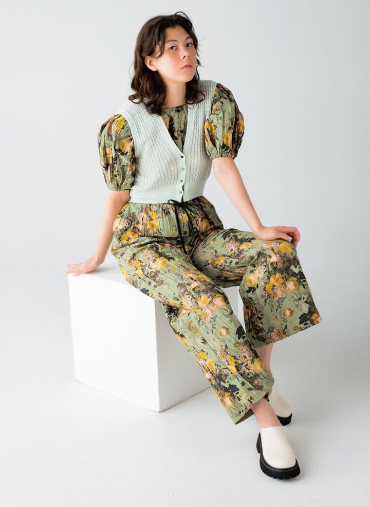 繊細な編み地やボタンが可憐。ニットジレ¥64,900 ジャンプスーツ¥79,200(共にルール ロジェット/ブランドニュース TEL:03・6421・0870) シューズ¥24,200(モリーニ/ジャック・オブ・オール・トレーズ プレスルーム TEL:03・3401・5001)