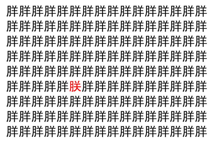 画像の中には、「羘」という漢字が縦に9行、横に16個並んでいます。 全部で144個となりますが・・・、そのうち1つは「異なる漢字」となってますよ!!