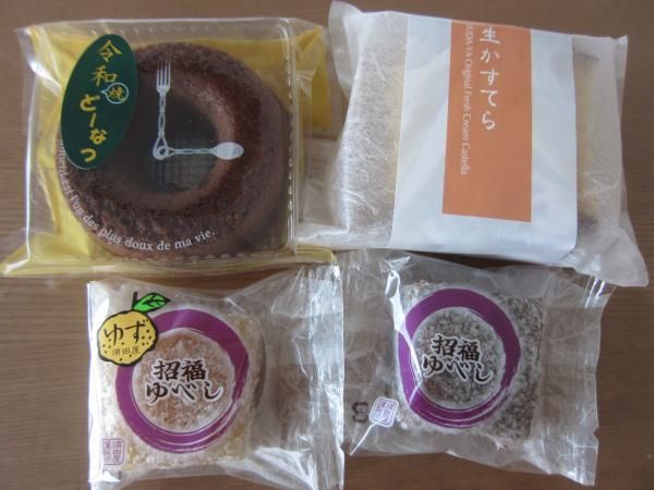 令和どーなつ。生かすてら。招福ゆべし(ゆず・ごまくるみ)。