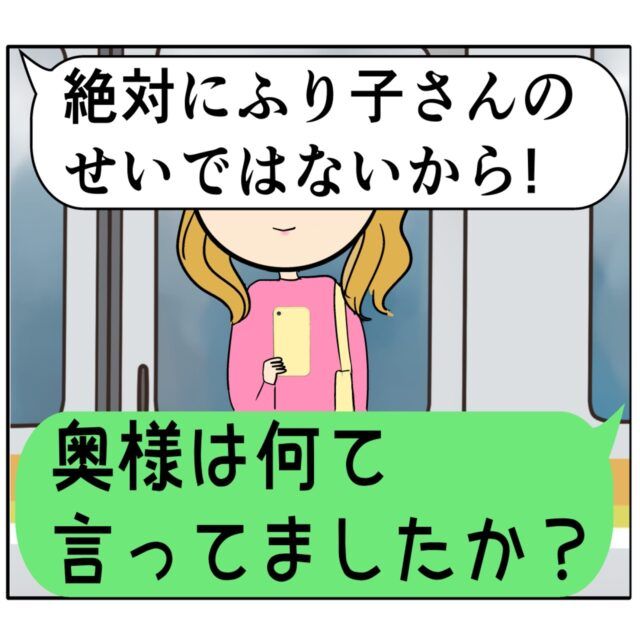 『絶対にふり子さんのせではないから!』良し男さんは逆に一生懸命ふり子さんをかばって伝えました。