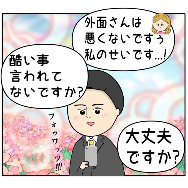 『外面さんは悪くないですぅ、私のせいです!酷い事言われてないですか?大丈夫ですか?』