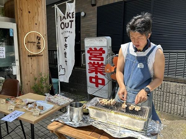 四街道市の大橋鳥肉店の鶏肉を使用した「焼き鳥」(1本250円)。炭火で焼いているので香ばしいです。