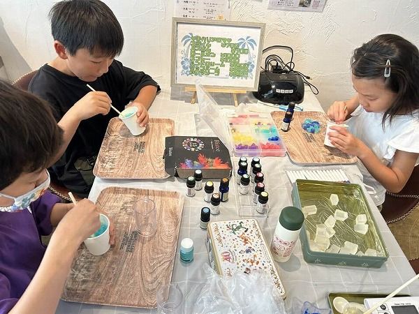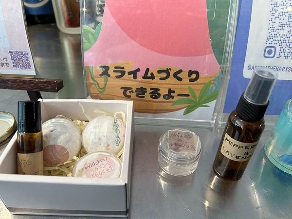 子どもたちが楽しそうに手作りスライムを作っていました。石鹸も作れるそうです。