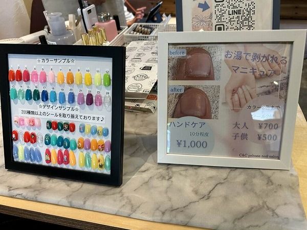 ネイルやハンドケアもLINEでお友達になるとお手頃価格になります。子どもにも優しいネイルは500円。