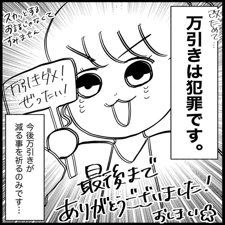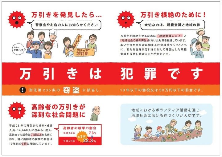 万引きは今も起きています。客側にできることとして、自分は絶対に万引きをしないのはもちろんのこと、子どもたちにも「物を盗んではいけない」という当たり前のルールを伝えることも大切です。万引きという犯罪がなくなることを願うばかりですね。