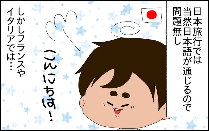 ドイツ生まれドイツ育ちで、ドイツ語と日本語以外は習っていない息子。フランスやイタリアを旅行した際、英語で話しかけられた際の対応に、ちょっぴり感心させられました!