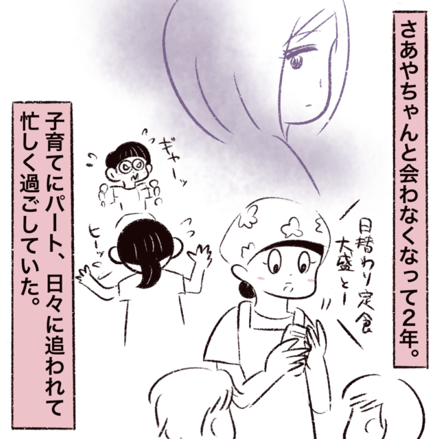さあやちゃんと会わなくなって2年。まるさんは子育てにパートにと日々に追われて忙しく過ごしていました。