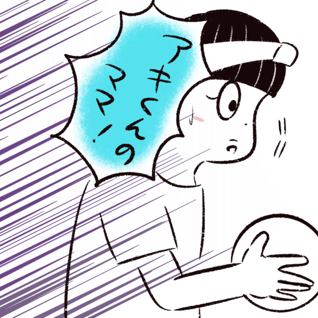 声のした方を振り返ったまるさんは、思わず持っていたボールを思わず落とします。
