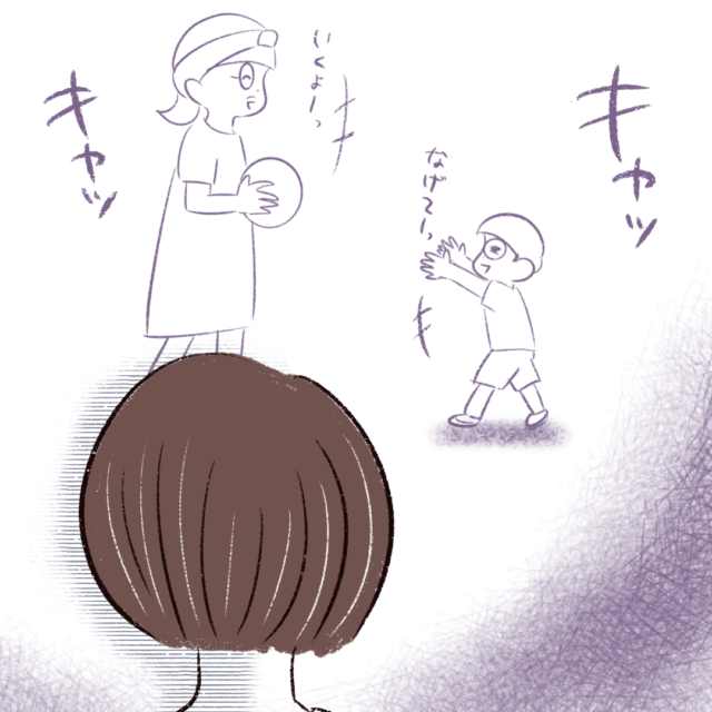 「アキくんのママ!」突然誰かに呼ばれ、驚くまるさん。