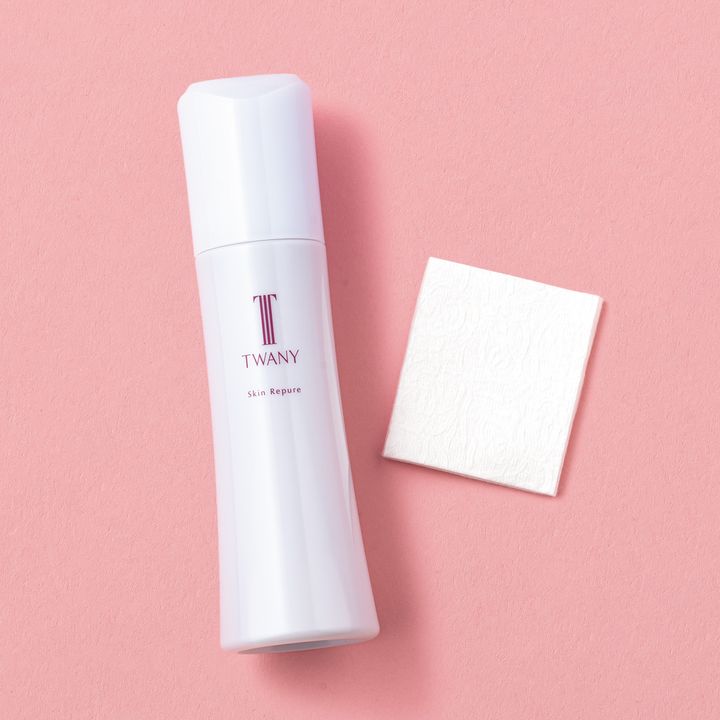 みずみずしい感触でうるおいを与え、過剰な皮脂、不要な古い角質だけでなく、角栓までアプローチ。しっとり透明感のある明るい肌に導くふきとり化粧水。180ml¥4,950トワニースキンリピュア専用コットン60枚¥550(カネボウ化粧品)