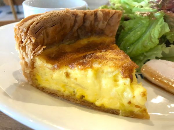 おっきなキッシュはフィリングがトロトロ!この日はベーコン・玉ねぎ・キャベツが入っていましたが、日によって変わるとのこと。
