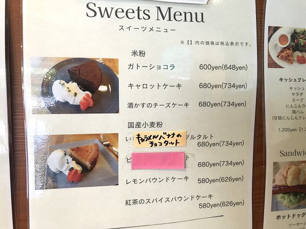 wabiさんは元々、レンタルキッチンで作ったお菓子をネットやイベントで販売されていたということもあり、スイーツメニューもたさん。