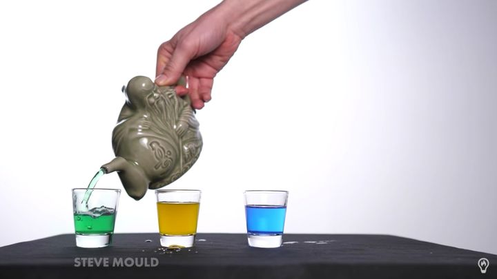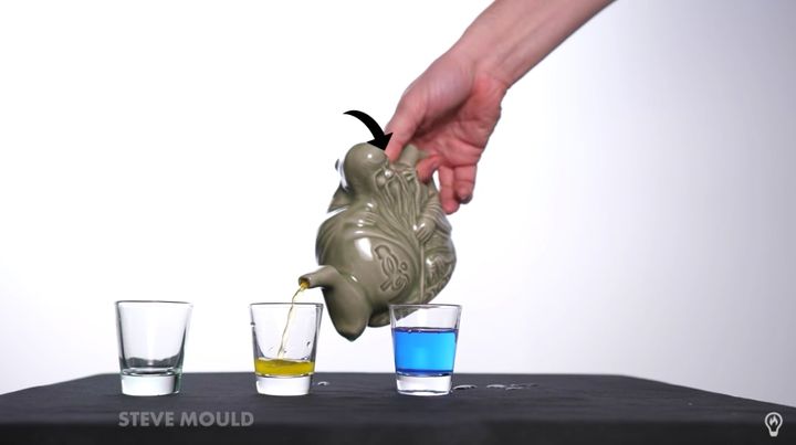 3つの飲み物を注ぎ分けられる「暗殺者のティーポット」 / Credit: Steve Mould/youtube(2021)