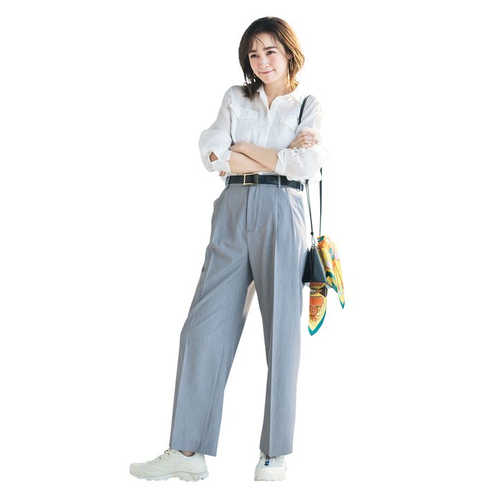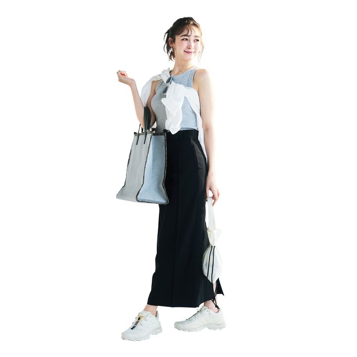 日中は某・編集部からの急なコスメリースも対応。 きれいめコーデ+スニーカーで 急な飲み会も駆けつけますよ!