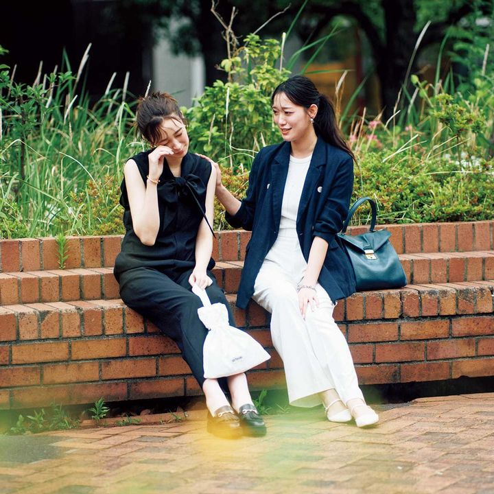 恵比寿で働くマイちゃんの昼休みめがけて1時間だけ相談(涙)。彼との信頼関係を大切に築いてきたマイちゃんの言葉は温かい。「大事なのはサチがどうしたいかだよ?」「マイちゃんは快速電車。私は今、結婚行きの準急行から強制降車された気分なの…」。バッグ¥3,960(アウトドアプロダクツ/アウトドアプロダクツ ユージュアル シングス 中目黒店)シューズ¥25,300(銀座かねまつ/銀座かねまつ6丁目本店)ピアス¥17,600(ココシュニック オンキッチュ/ココシュニック)バングル¥23,760(ソコ/ZUTTOHOLIC)