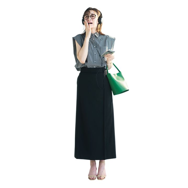通勤中の落ち込んだ気分を強制的に切り替えるために推しの一番好きな曲を爆音で…。でも思い出すのはケンくんと一緒に聴いた時間ばかり。音楽ってどうして思い出と直結するんだろう。バッグ¥64,900(ロンシャン/ロンシャン・ジャパン)サンダル¥17,600(ピシェ/アバハウスインターナショナル オンラインストア)メガネ¥44,000(アイヴァン/アイヴァン 東京ギャラリー)ブレスレット¥7,920(エイチアッシュ/フォーティーン ショールーム)
