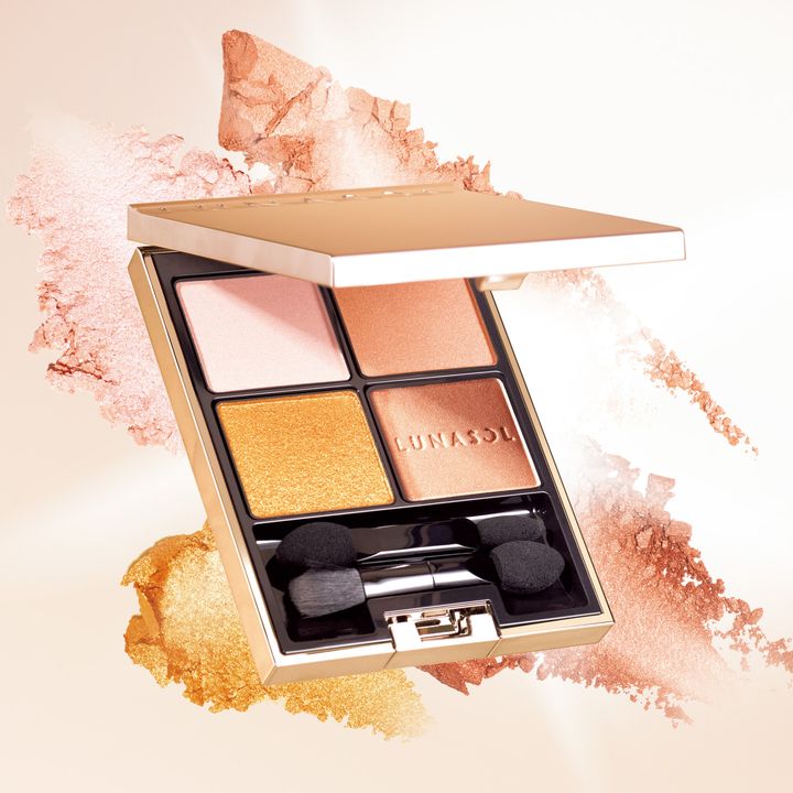 繊細なカラーパールを含む肌馴染みの良い4色がセットに。眼差しに淡い彩りを与えながら、薄膜で透明感のある仕上がりを叶える。受賞カラーの名称は『Morning Glow』。上品に輝くゴールドが奥行きを演出し、まぶたに温かみとハリをプラス。表情をエネルギッシュに照らす。¥6,820(カネボウ化粧品)
