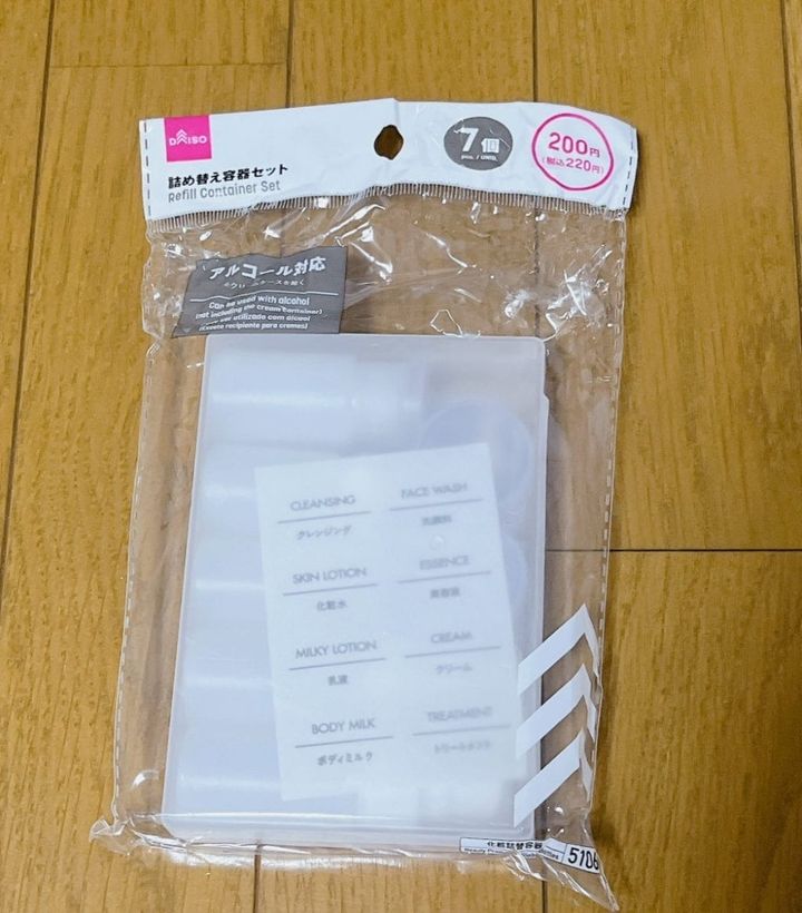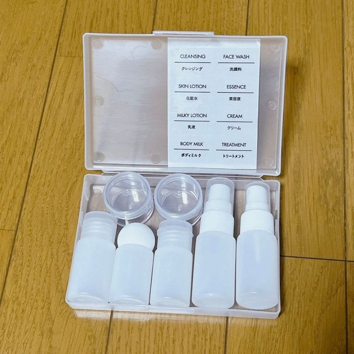 コレ一つでいつもの化粧品セットが完成! 容器たくさん&ケース付きで高コスパな <詰め替え容器セット(7個)(ダイソー)>¥220