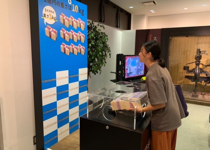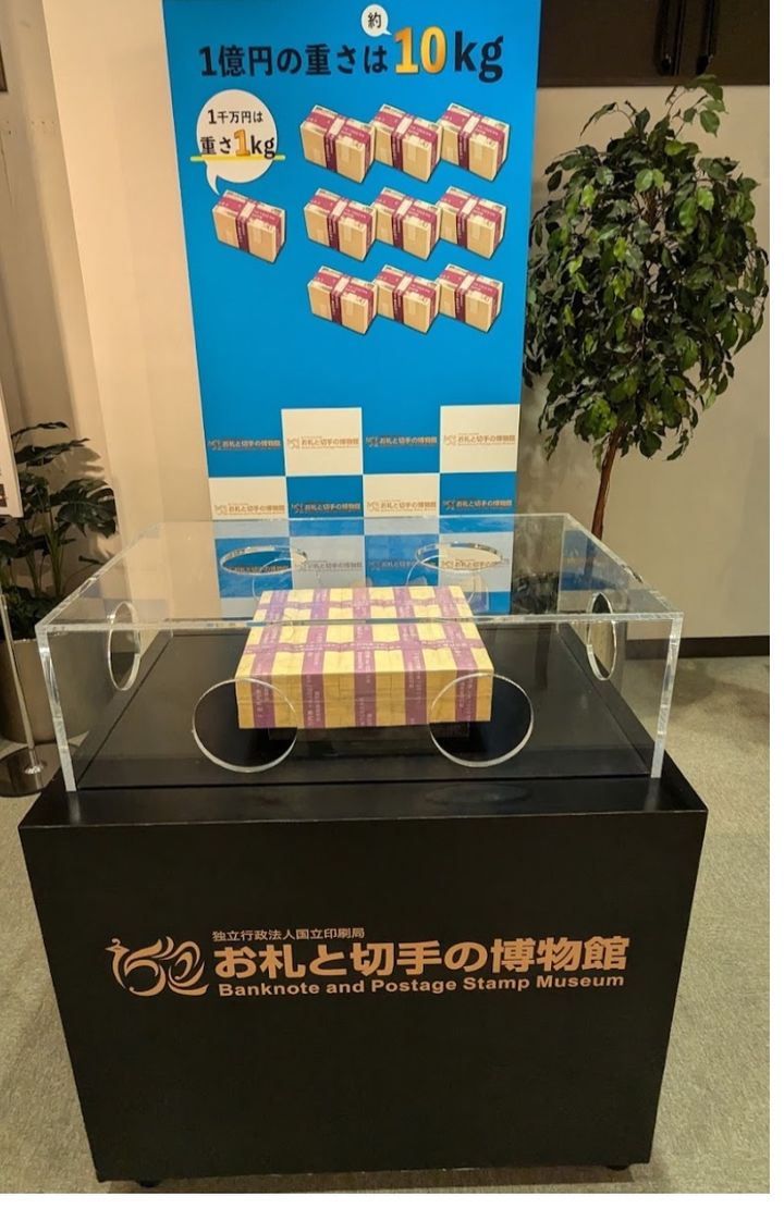 1億円分のお札の束がケースに入っていて、実際に持ち上げることが出来ます