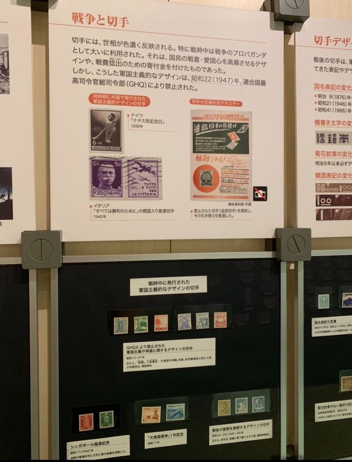 2階では、歴代のお札や切手を通して、社会背景の変化や技術の進歩によるデザインの移り変わりなどが展示されています