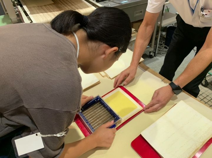 「すきげた」という道具を使って透かし入りハガキを作ります