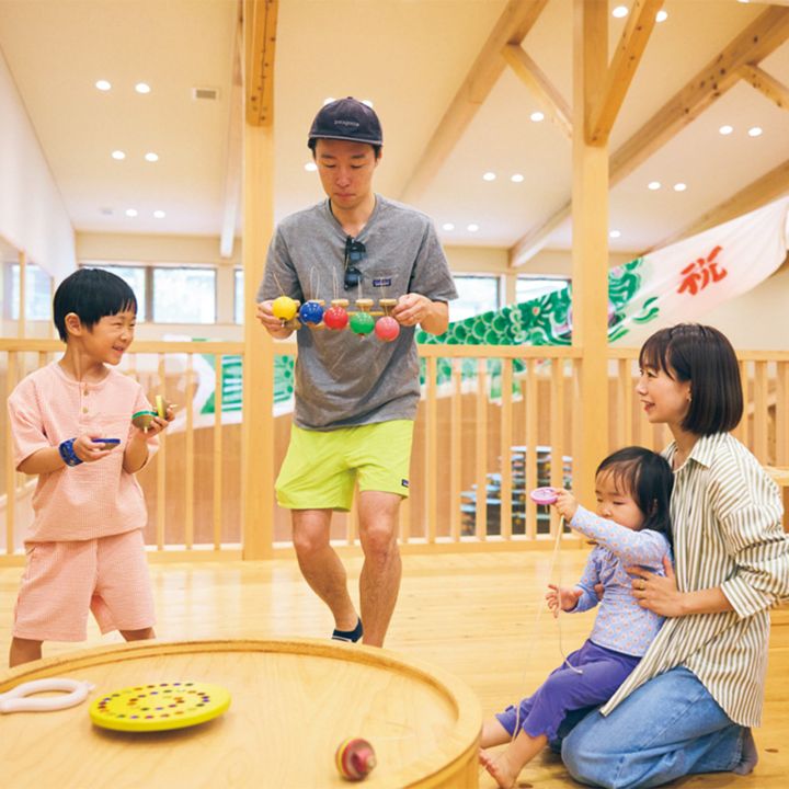 豊かな森の恵みを生かした体験型室内施設。木のおもちゃと遊びが大充実。隣接するおもちゃ工房ではワークショップが開催されることも。