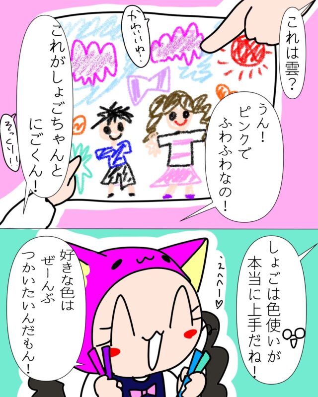 長女しょごーきちゃん、長男にごーきくんの姉弟を育てるにょろ。さんから、しょごーきちゃんのお絵描きかがきっかけでよみがえった思い出と、親としての想いのお話が届きました。