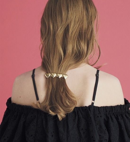 バレッタ 1,210円/アネモネ(サンポークリエイト)ブラウス 13,200円/Ungrid 髪をまとめるついでにドレスアップ気分で・あるいは遊び心をもって。ふくよかな形が甘くてかわいいバレッタで、思いきった肌見せをドレスダウン。髪の下のほうにとめると抜け感が。