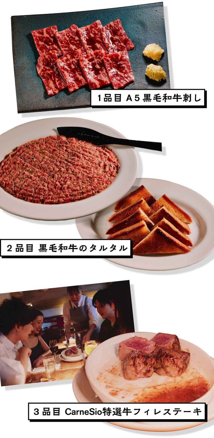 アラカルトで頼むのもいいが、もしも初来店であるならば今回紹介する3品をはじめカルネジーオのおすすめ料理をすべて盛り込んだ「CarneSio eastコース」(¥8,250)を選んでほしい、とスタッフは語る。
