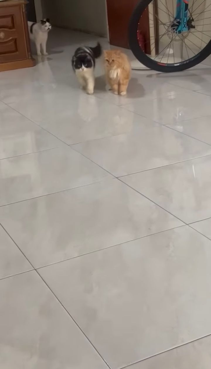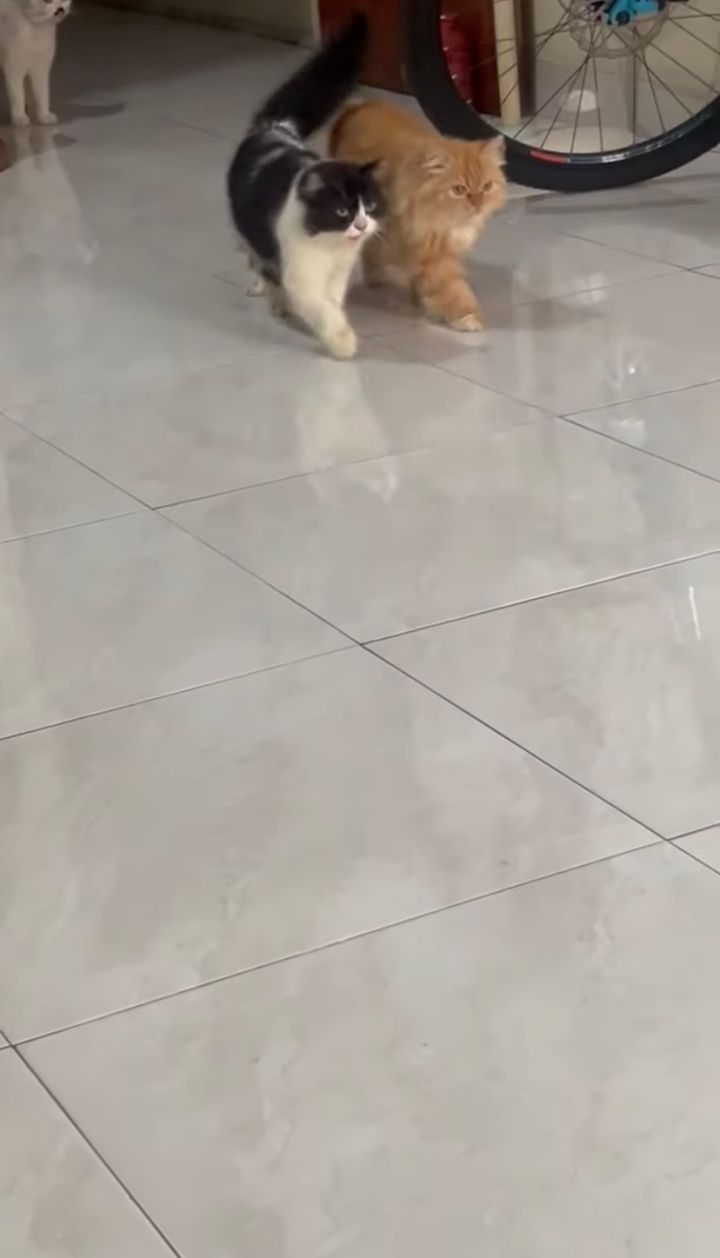 ご紹介する動画は、インドネシア・西ジャワ州のお宅で撮影されたもの。 飼い主さんは、愛猫たちのレアな姿を捉えていました。