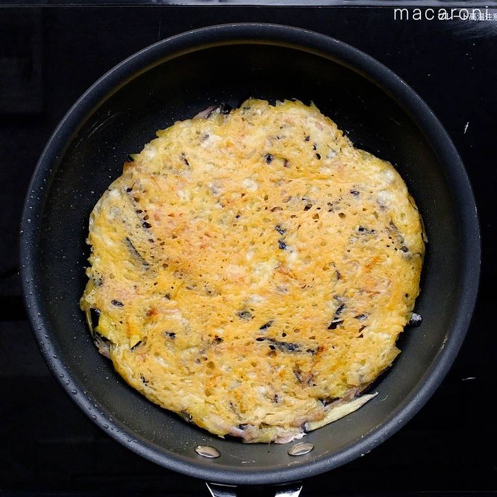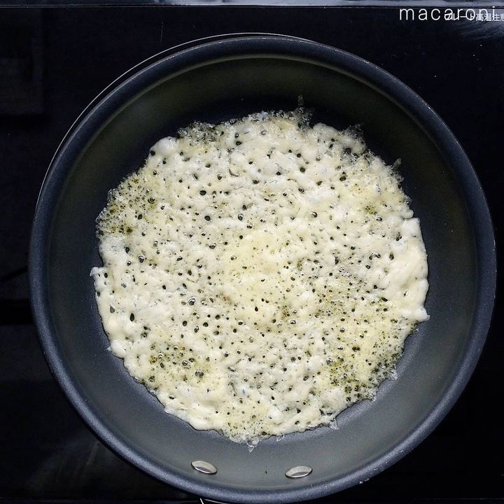 チーズがしっかりとカリカリになると生地をひっくり返しやすくなります。
