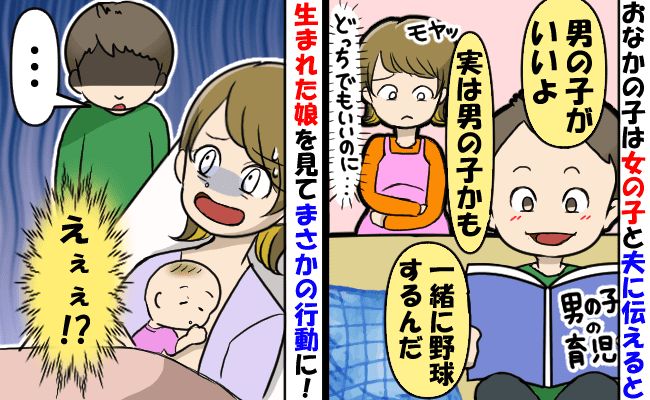 妊娠中、一緒にいろいろな遊びができるから子どもは男の子がいいと言っていた夫。生まれてくるのは女の子の予定でしたが、男の子がよかった夫は信じられない言動を繰り返してきて……?