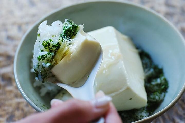 豆腐は食べたい分だけ、青じそはたっぷりとのせて。1人の昼食にも、お酒の〆にも弱っているときにも覚えておくと助かる一品です。