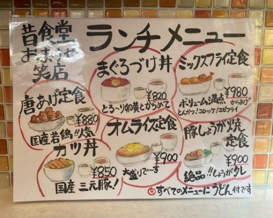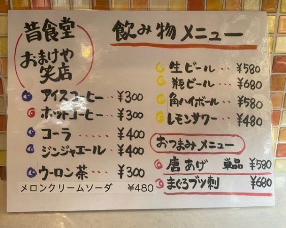 おまけや笑店さんはランチ営業もされていて、メニューはこちらです。