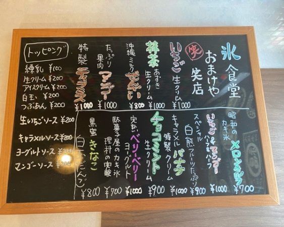 かき氷も昔ながらの感じかと思いましたか?いえいえ、フルーツをふんだんに使用したり、生クリームがのったり、ティラミスなど今どきのメニューもあります。もちろんレトロなものもありますよ。