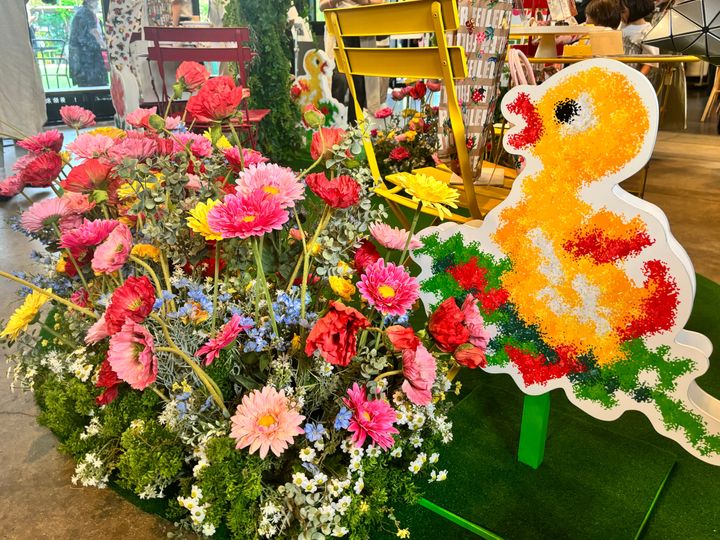 鮮やかなお花と小鳥たちが緑に映えます⭐︎