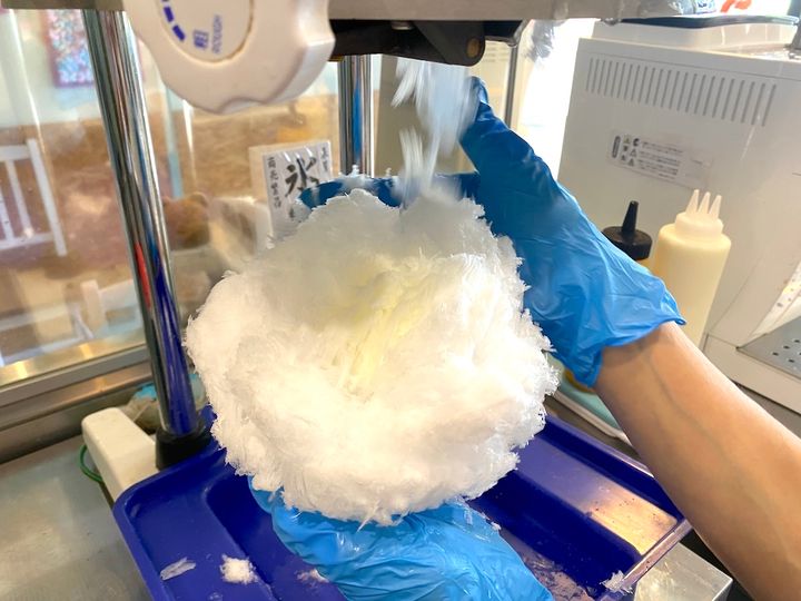 「トゥインクル」のかき氷はキュートな丸いフォルムですべてワンサイズなのが特徴。13〜15cmの高さのボリュームで食べ切りやすくなっています。氷は口当たりがやわらかく、口に入れるとすぐに溶けてしまうほどです。