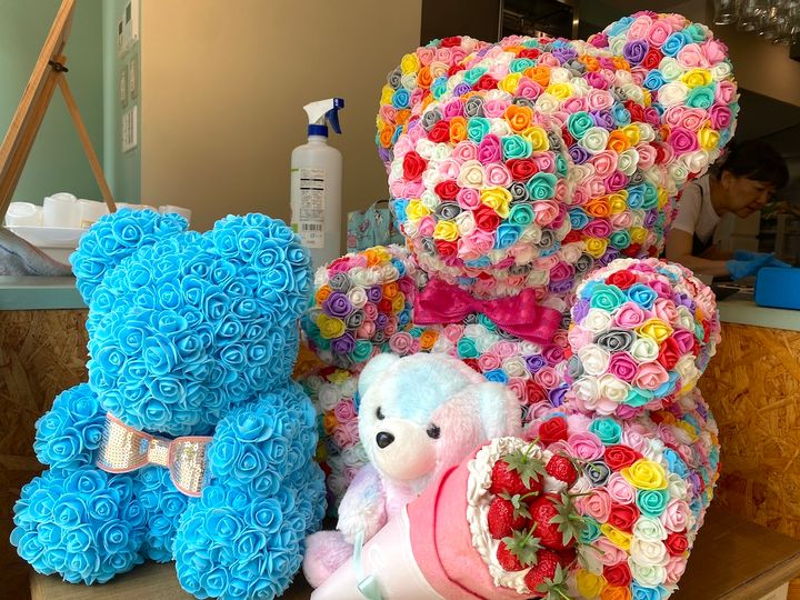 「トゥインクル」の店内は、カラフルなクマのぬいぐるみやアートが飾られたキュートな空間。「トゥインクル」のために作ったオリジナルアイテムが多くあり、写真を撮るお客さんがほとんどだそうです。