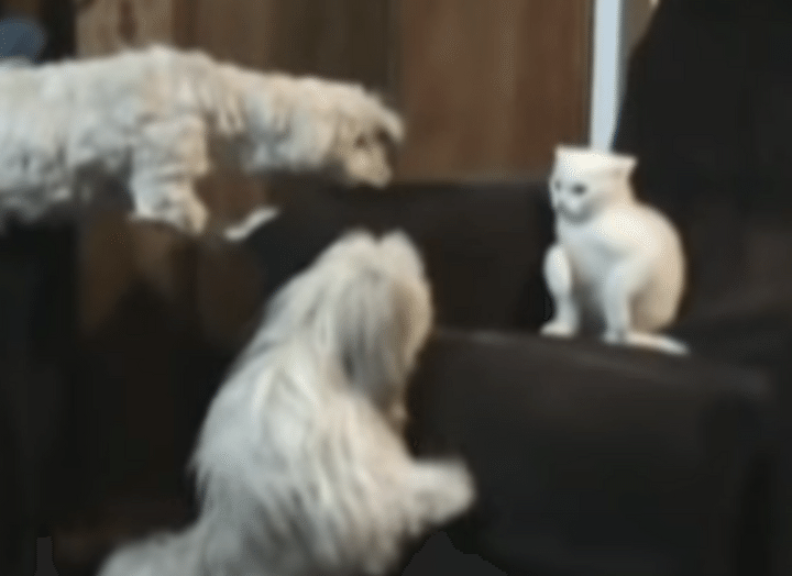 3. 犬に絡まれる子猫、助けに来てくれたのは