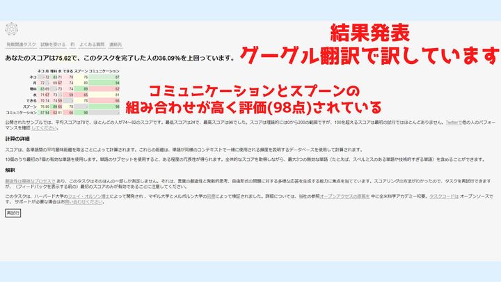 なお現在DATはネット上に公開されており、誰でも自分の創造性の高さを確かめられるようになっています。