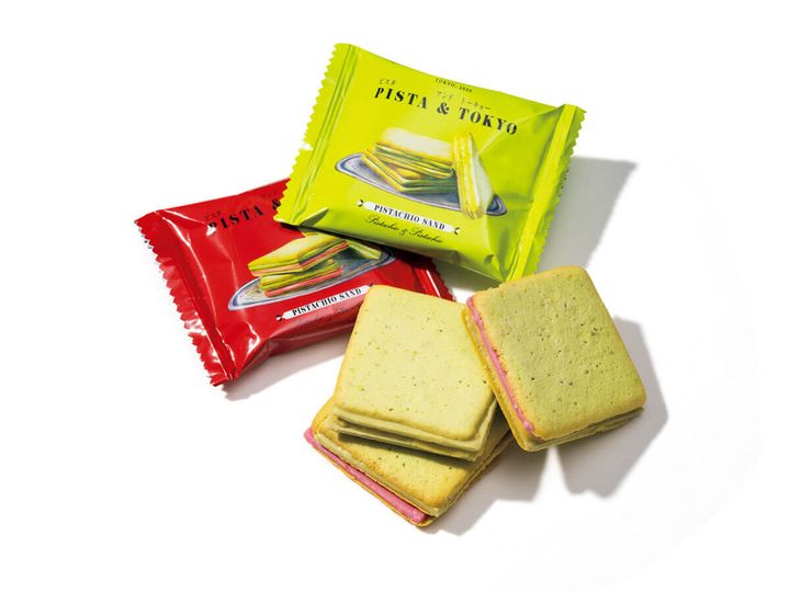まろやかなコクや香ばしい風味が特徴のピスタチオに魅せられた、ピスタチオスイーツ専門店の定番人気商品。ピスタチオを練り込んだクッキー生地でピスタチオチョコをサンドしたピスタチオ尽くしの味と、フランボワーズチョコが加わった味の2種入り。クッキーのほのかな塩気が、5層になったクッキーとチョコのリッチな味わいのアクセントに!