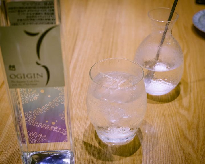 一杯目のドリンクは、メニューで目をひいた佐賀クラフトジン。ジンというと、強いお酒という印象ですが、最近よく飲まれているハイボールでもいただけます。今回は小城ジン「ORIGIN 想 1,100円」を選んでもらってハイボールに。このジンは佐賀県小城市で作られています。さっぱりしていておいしい! ビールもいいですが、まずはジンで始めるっていうのもアリですね。