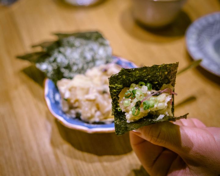 食べ方は、海苔にのせてちょっと巻いて。これはお酒に合います。