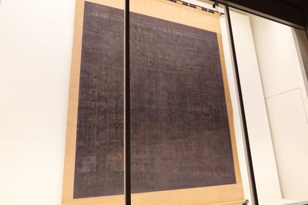 国宝 両界曼荼羅(高雄曼荼羅)は、平成28年(2016)から6年の歳月をかけて修理が行われました。 金銀泥の諸尊の姿や、文様も目で見て確認できるところまで修復されています。