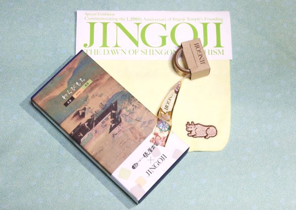 創建1200年記念 特別展「神護寺―空海と真言密教のはじまり」オリジナルグッズは、刺繍ハンカチ【丑】(1‚100円)、マスキングテープ十二神将立像(660円)、俵屋吉富コラボ わらびもち(1‚130円)を購入。 マスキングテープ十二神将立像は金色が入っていてキラキラして色もカラフル。※価格は全て税込です。