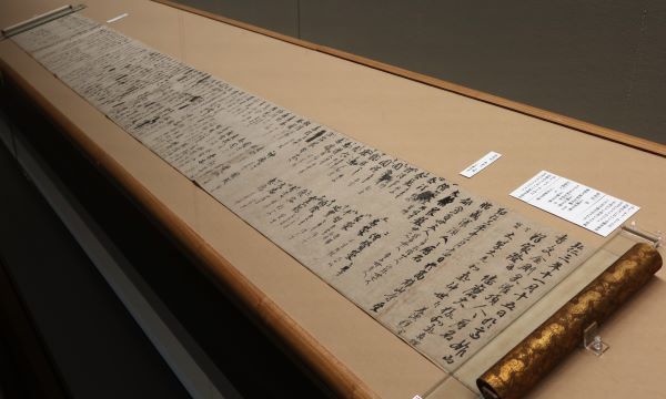 国宝《灌頂暦名(かんじょうれきみょう)》(空海筆)。灌頂を授かった者の名前が記された貴重な資料で、最澄の名が見えます。 空海と最澄は、神護寺を縁として交流があったことが残された書簡からもわかっています。