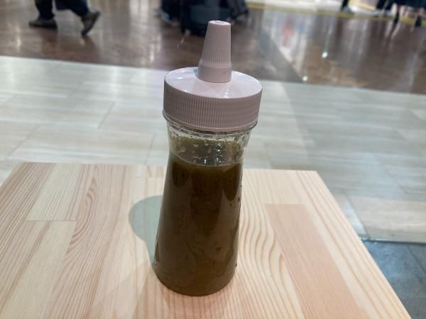 各テーブルには、柚子タレが用意してあり、お皿に少し注いで、とりかわをつけて味を変化させることができます。